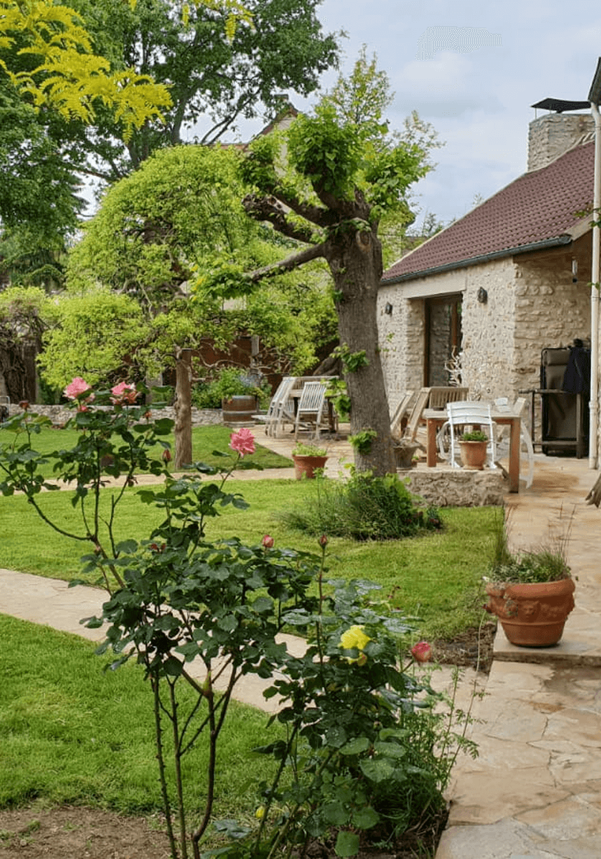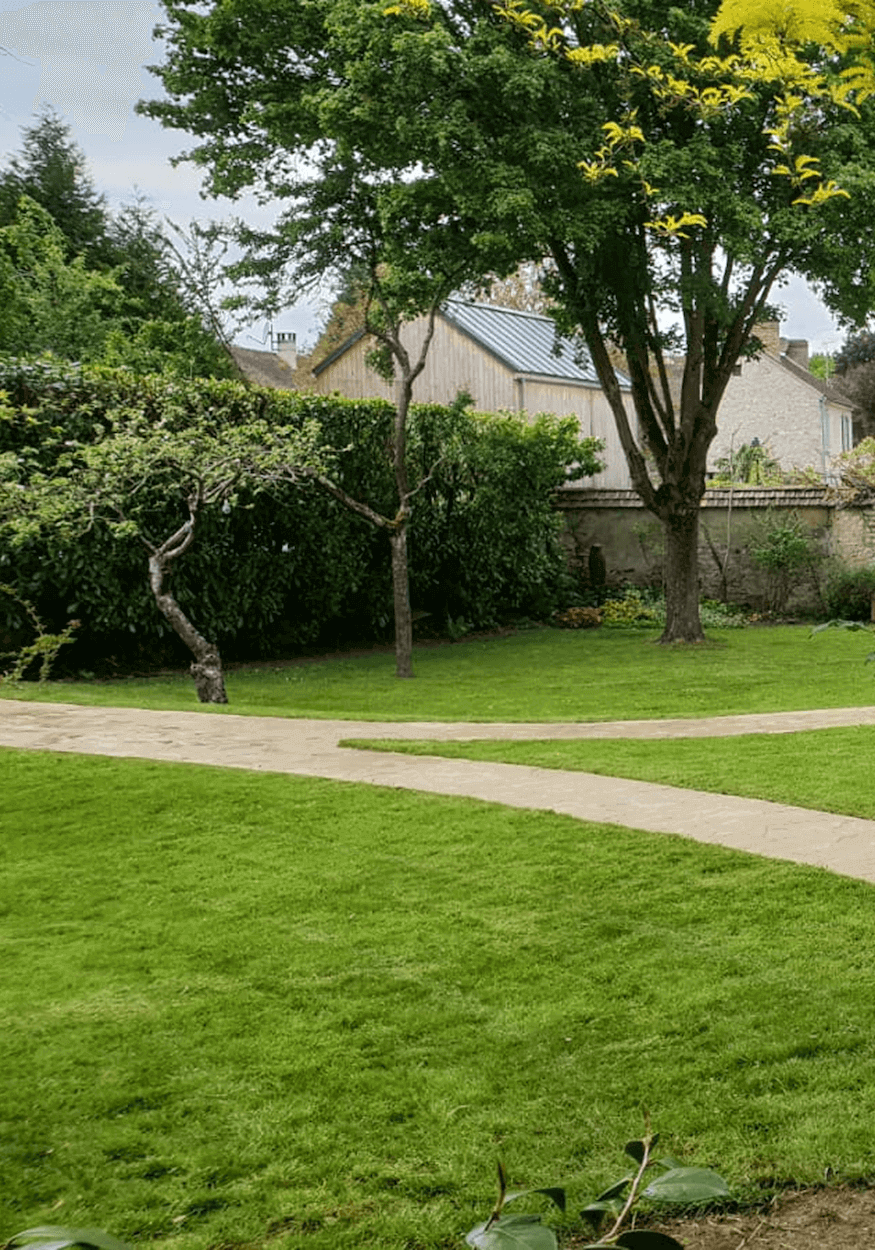 Dans ce jardin familial, Les Garçons du Paysage assurent un entretien régulier et respectueux du rythme naturel. Les végétaux, le gazon et les massifs bénéficient d’une attention constante : gestion des feuilles réutilisées comme paillage, labours traditionnels, apports en engrais et amendements organiques. Les plantations évoluent au fil des saisons, renouvelées avec soin. Une gestion différenciée est appliquée autour de la petite rivière qui traverse le jardin, préservant l’équilibre entre esthétisme et biodiversité.