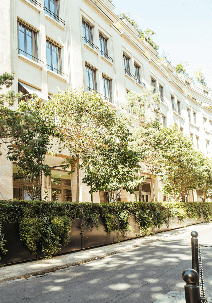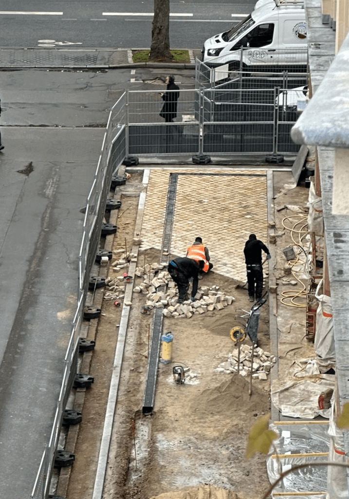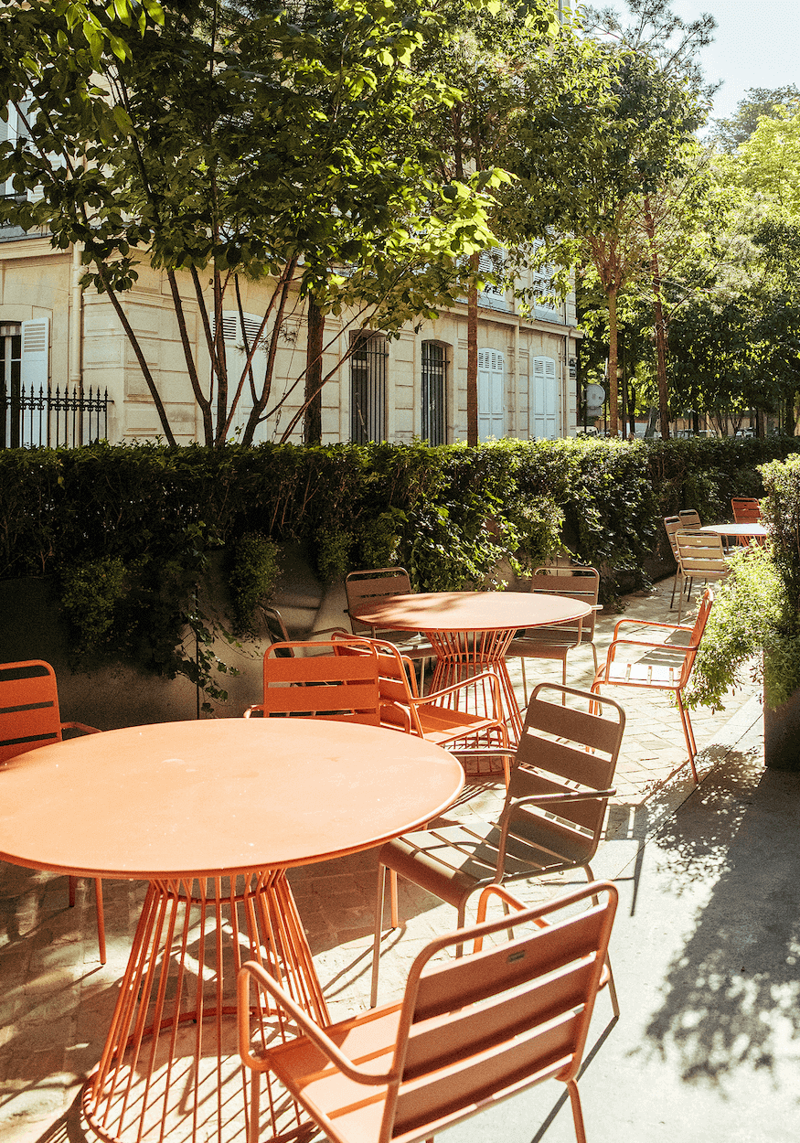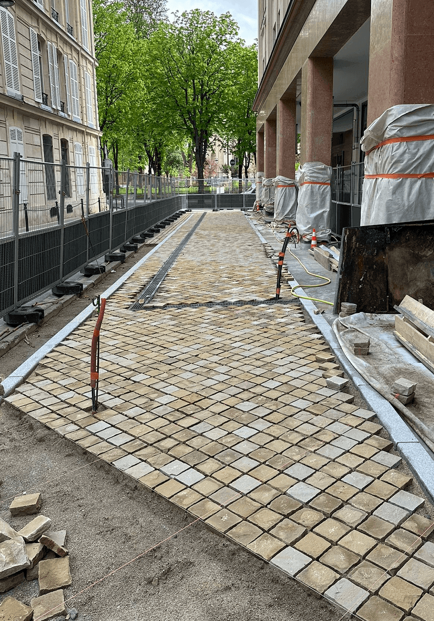 Pour cette terrasse de restaurant d’entreprise, Les Garçons du Paysage ont entièrement repensé l’espace, de la chaussée aux plantations. Après la dépose de l’existant, une structure en grave 0/31.5 a accueilli 180 m² de pavage en grès scié Kandla beige, bordé de granit. Des jardinières en acier thermolaqué noir, conçues sur mesure,intègrent un arrosage automatique discret. Les poteries Ateliers Vierkant et le mobilier sur mesure complètent l’ensemble. Arbres de grande hauteur, arbustes, vivaces et bulbes profitent d’un substrat riche en nutriments. Un contrat d’entretien hebdomadaire garantit propreté, taille raisonnée et suivi des arrosages tout au long de l’année.